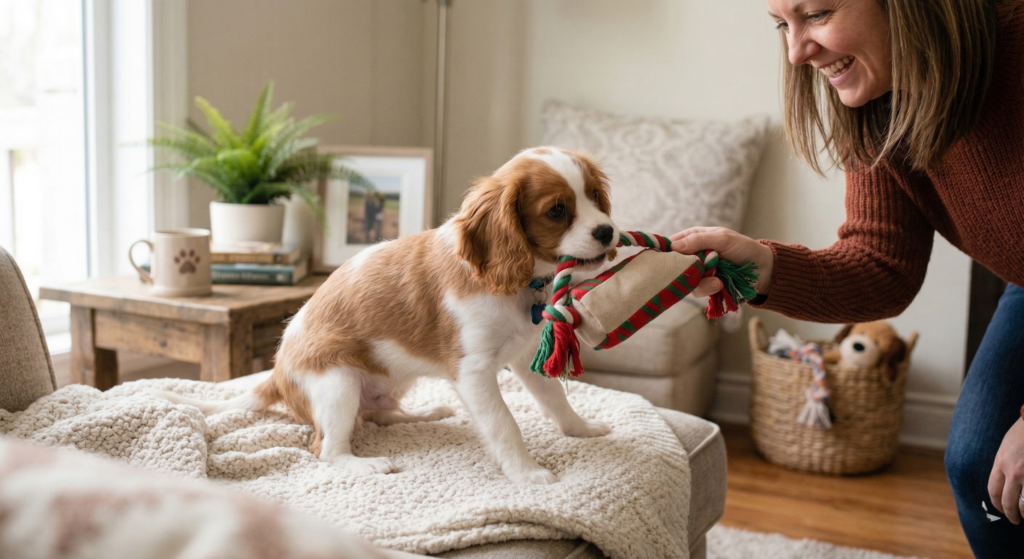 Playtime helps burn energy and prevents unwanted behaviors like chewing or biting.