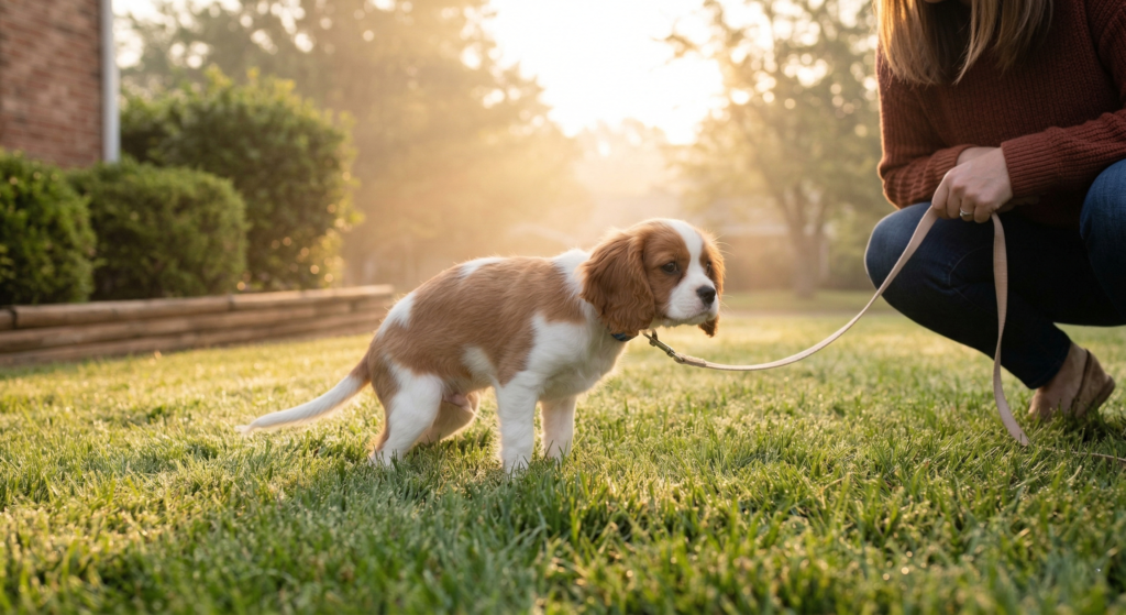 - Take your puppy out for a potty break immediately after waking up